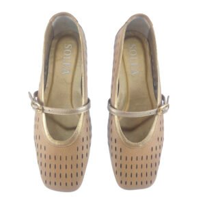 Esta encantadora baleta está elaborada en cuero genuino de alta calidad, con un diseño en lunares o pepas café que aporta un toque moderno, fresco y femenino. Su acabado suave y delicado garantiza durabilidad y una apariencia sofisticada ideal para la mujer actual que busca destacar sin perder comodidad.