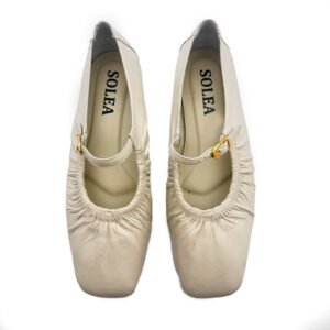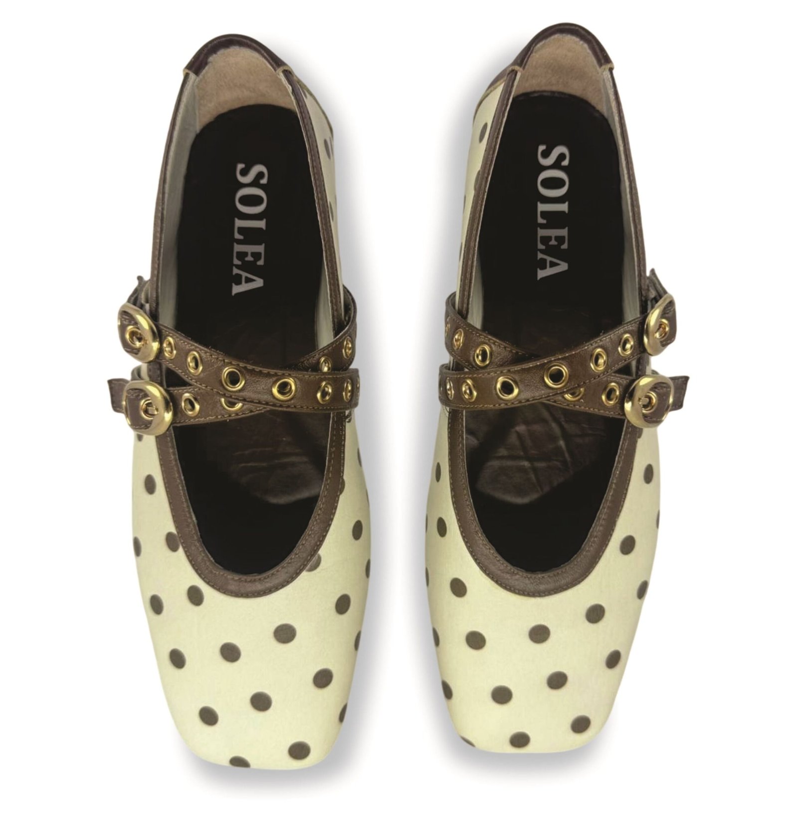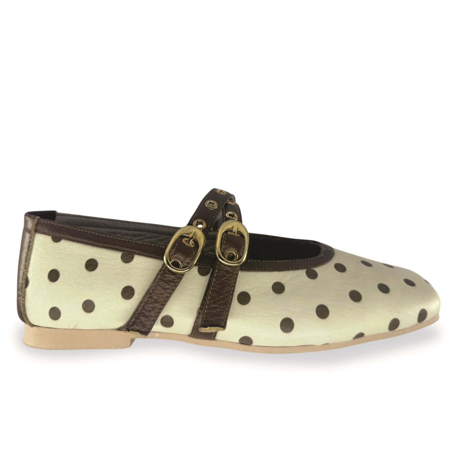 Baleta Helena en cuero blanco con pepas café – Estilo Moderno y Confort Total