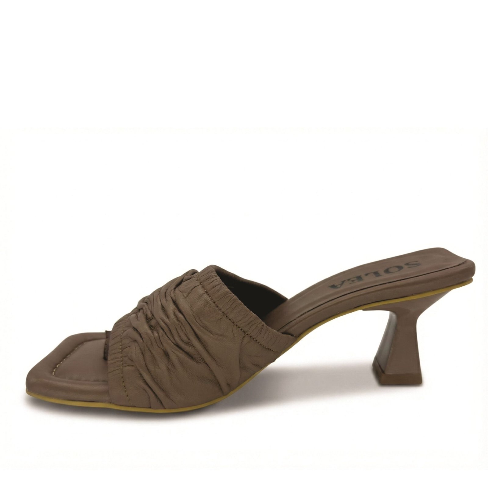 Sandalia Sol Tacón en cuero brownie fruncido