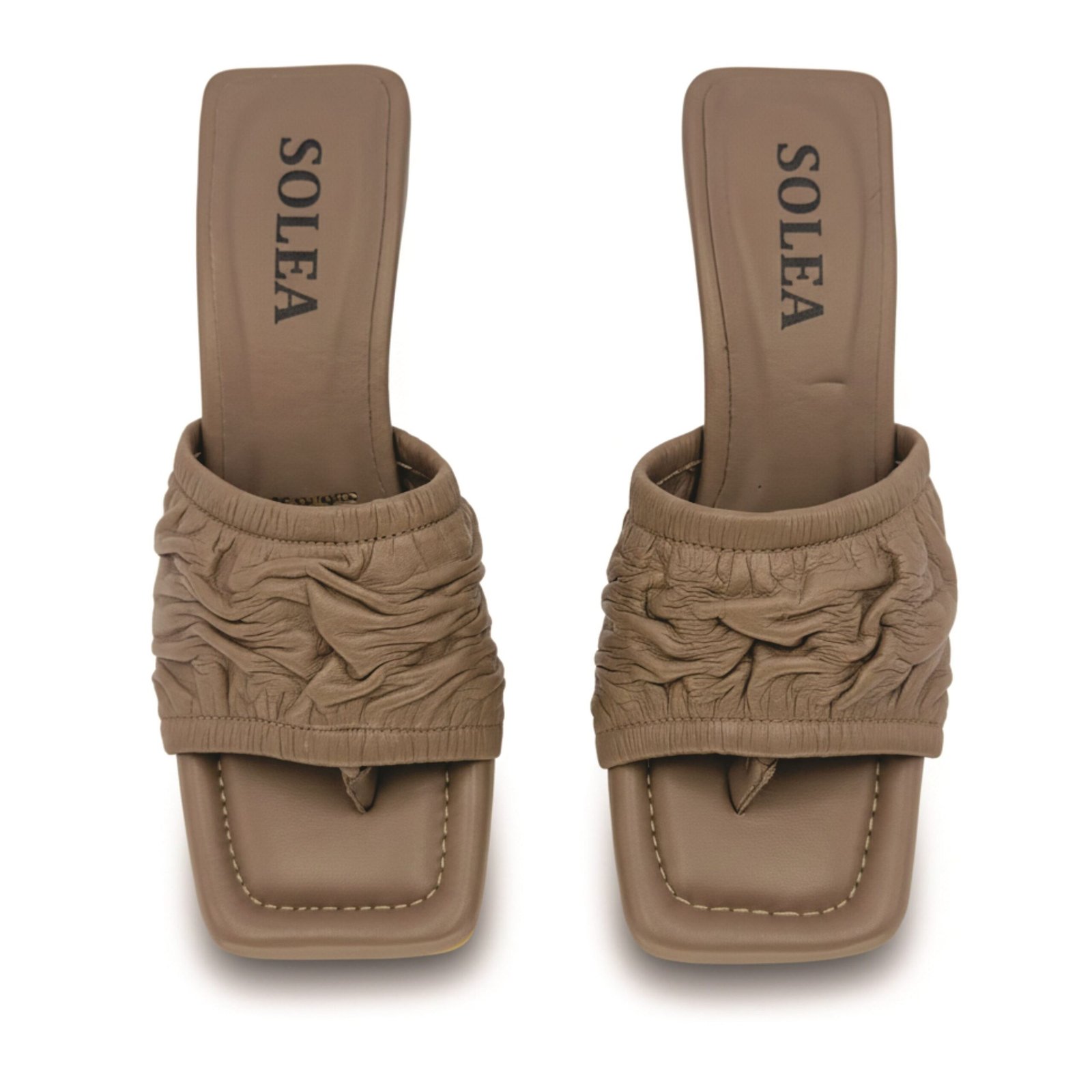 Sandalia Sol Tacón en cuero brownie fruncido –